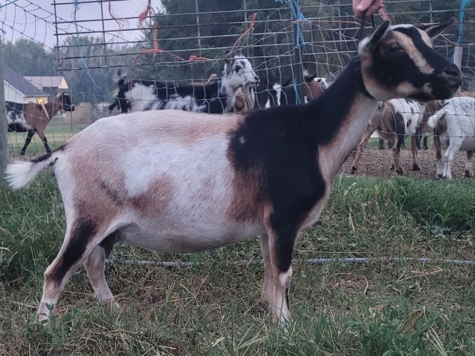 Aradia was supposed to be retired, but decided she didn’t like that plan. Literally 3 seconds of inattention with the buck on a leash in the doe pen means she will be gracing us with babies again.