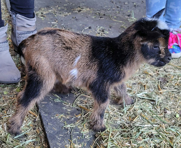 Violet was supposed to be a first freshener this year, but ended up not taking. We had a few others bred to that particular buck that didn’t end up kidding, so I think it’s more on him than on her. Her dam was a beautiful doe, with a very productive udder (and a bad attitude about being milked due to trauma before I got her). She also had a fore udder attachment that was not extended onto the body as far as I would like to see, though she had a fabulous medial. I am hopeful that I Do made improvements in that fore udder, as he has for others. Violet was a bottle baby, and is friendly, but not pushy.