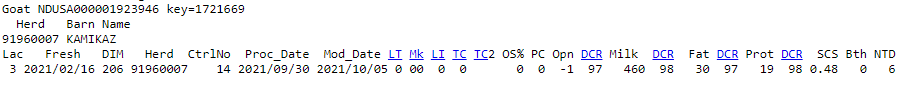 I have had high hopes for Kamikaze from the time she was born, and she just gets better as she ages. I was very pleased her linear appraisal score as a 4 year old, and have hopes for her to get 90 or higher like her dam the next time she is appraised. She is very easy to milk, with that same soft texture that Pequot has always impressed me with.