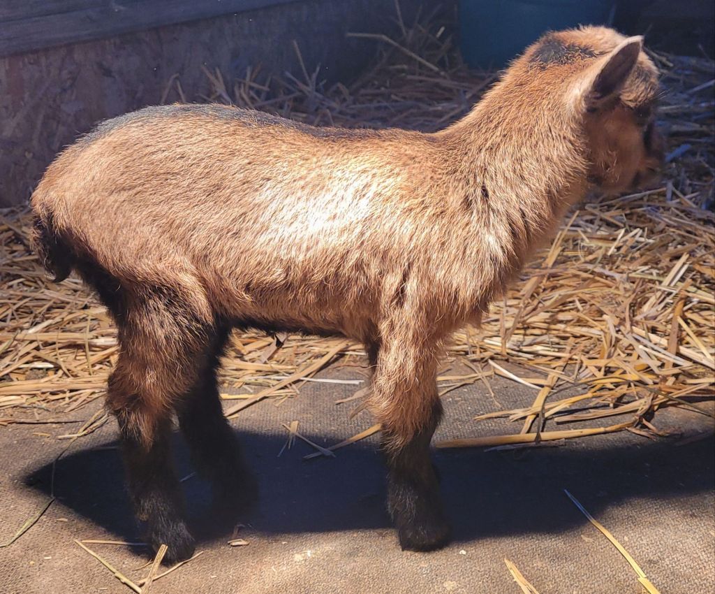 Unfortunately Galaxy kidded a little bit before my kids got home from school, and since this was her first time, she didn’t really know what she was doing. The boy didn’t get out of the sack in time, and one of the girls was alive when they found her, but was extremely cold. I was at work, so a friend came to help, did her best to get her warmed up, but it was already too late, and she passed not long after. The other girl is doing very well, and Galaxy is an attentive mom. Unfortunately, little girl passed. She was fine when we were playing with the babies one night, but when we were doing chores the next evening she had her head hanging and was panting. I suspect she inhaled some of the fluids at birth, and ended up with aspiration pneumonia. We immediately treated her, and I checked on her several times, but they don’t have much reserve to keep them going when they’re only a few days old, and she was gone in the morning.