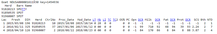 | Year | Age | General Appearance | Dairy Strength | Body Capacity | Mammary System | Final Score |