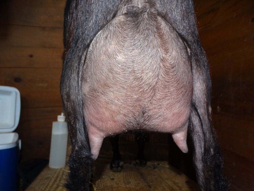 I came close to buying Bengal’s sire Rozen, but eventually ended up choosing Guitar Hero. I hoped when we were ready to add another buck that he would still be available, but his breeder decided to keep him. We’re very excited to bring in Bengal though, and think he should blend nicely with what we currently have. His dam has milked enough to earn her milk star in all 3 categories, so she is just waiting on ADGA to get their records up to date. Once that is done, his son’s can get their *B.