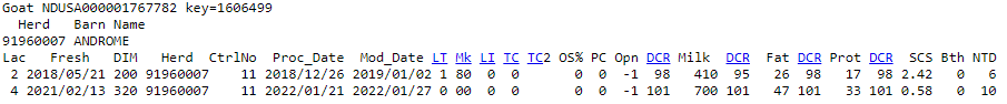 | Year | Age | General Appearance | Dairy Strength | Body Capacity | Mammary System | Score |